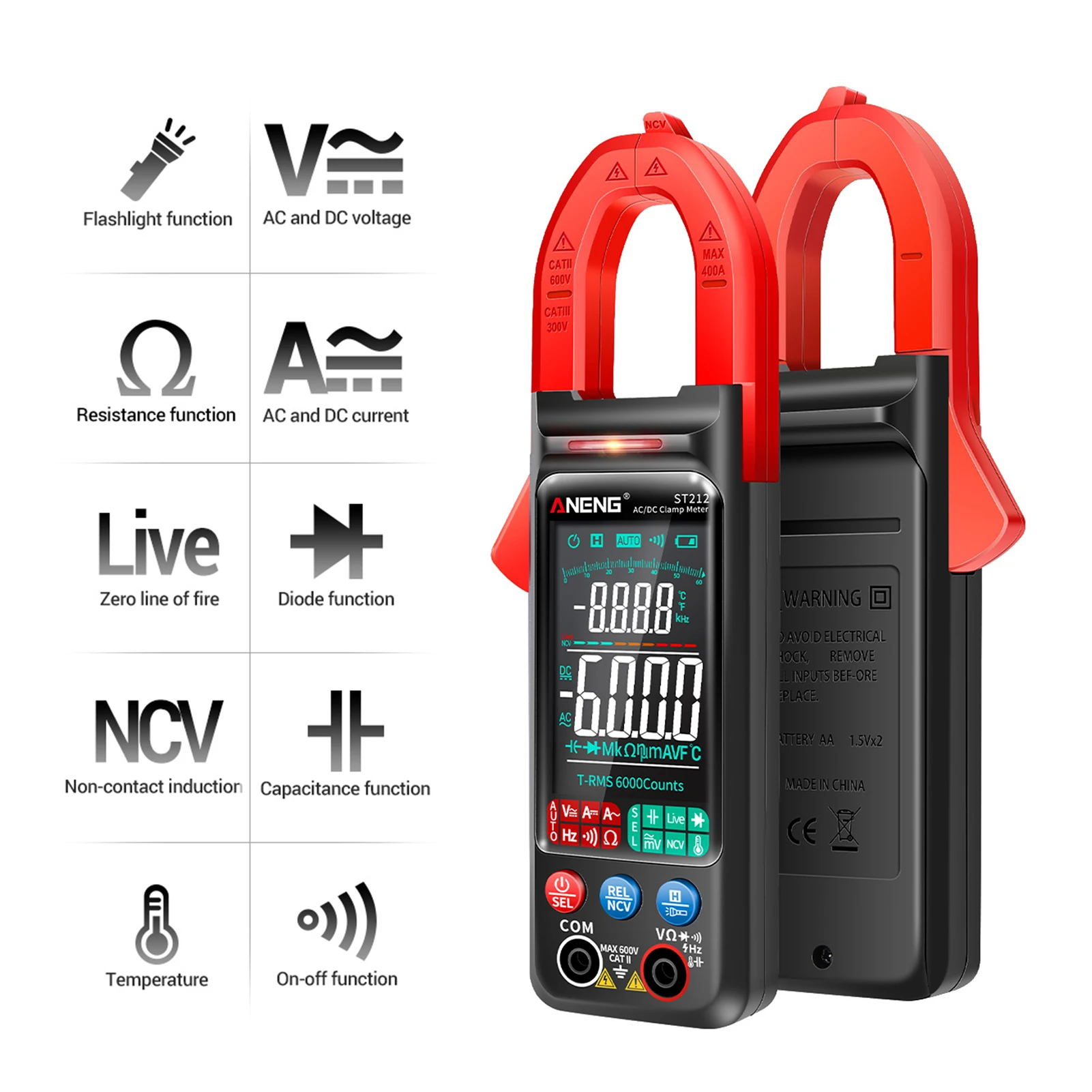 Мультиметр-зажим ANENG ST212 цифровой, 6000 отсчетов, с цветным дисплеем