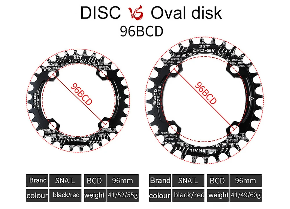 Цепная звезда для горного велосипеда SNAIL MTB 96104BCD, круглаяовальная, 323436384042T