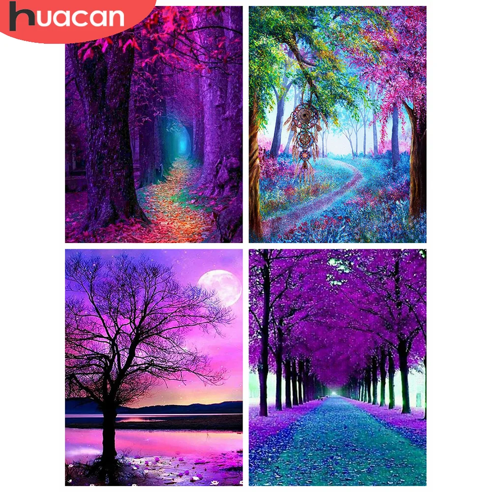 Алмазная вышивка HUACAN 5D набор деревьев улица Алмазная мозаика пейзаж Стразы картины украшение дома