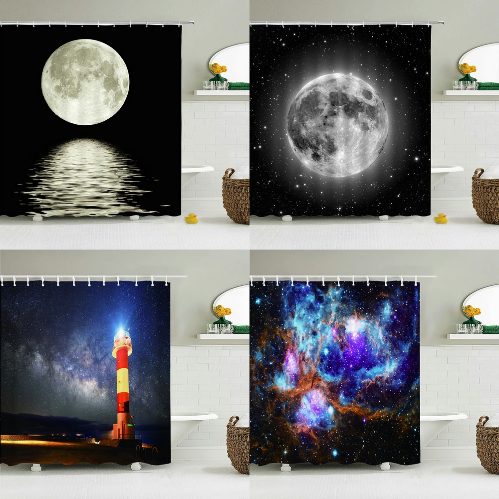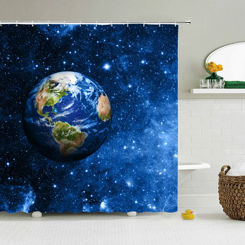 Занавеска для душа с изображением Вселенной земли и звезд