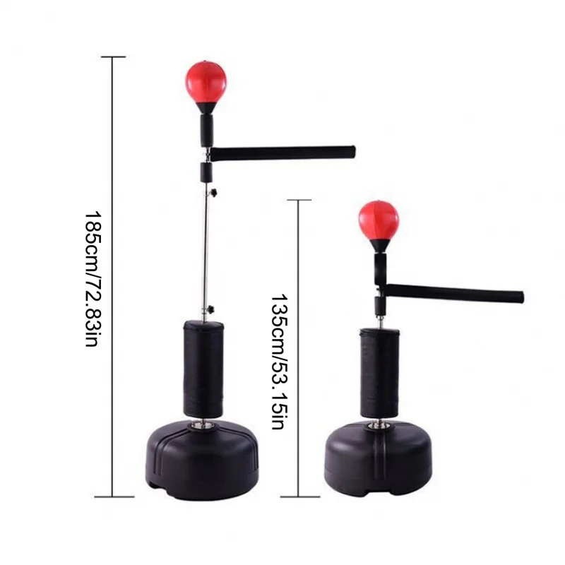 Пункты маркированного списка:1. Безопасный и прочный: боксерские мячи с высококачественными ручными шариками из искусственной кожи и амортизирующими полиуретановыми обертками делают наш тренажер более прочным и безопасным, И может длительное время принимать участие в спортивных занятиях. Прочный высокоскоростной шар может избежать утечки воздуха.2. Гибкий рокер на 360 градусов: гибкий рокер на 360 градусов может осуществлять вашу координацию и скорость реакции, не только тренировать мышцы рук, уменьшить вес, но и снять напряжение.3. Регулируемая высота: наш вертикальный боксерский мяч может легко адаптироваться под все потребности, очень подходит для любителей бокса и фитнеса, подростков, взрослых или людей, которым нужно снять стресс.4. Держать его стабильным: вы можете использовать его на плитке, напольной плитке, деревянных досках, цементных полах или где вы хотите.5. Несколько преимуществ: надевайте удобные перчатки и сбивайте недовольство. Боксерский мяч поможет вам увеличить пульс, выполнять отличные упражнения и в то же время поможет вам улучшить время, скорость и точность движений рук и глаз.Спецификация:Наименование: Пробивной мешокМатериал: искусственная кожа + высокоэластичная пенаРегулировка высоты: 135-185 смПрименимые люди: любители фитнесаОсобенности: регулируемая высота, подходит для людей разного возрастаФункция: снятие стресса, Повышение силы, выносливость и физическая фитнесУпаковочный лист:Учебная мишень * 1