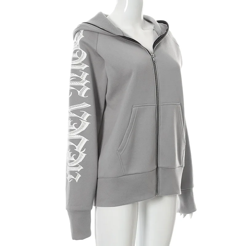 Женская толстовка на молнии с надписью, куртка-кардиган в готическо...