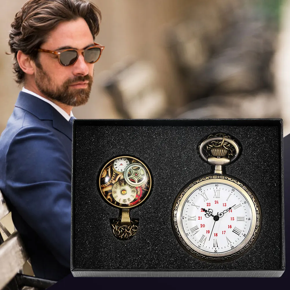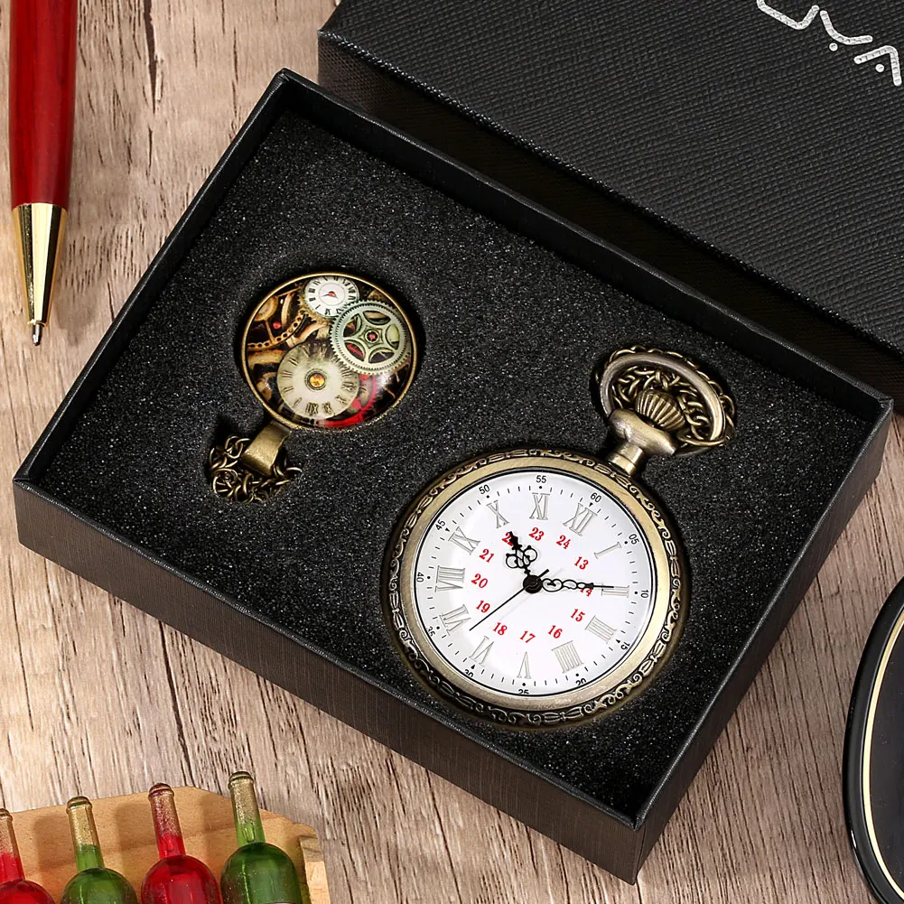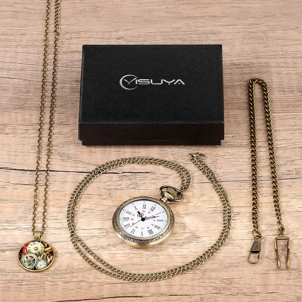 Подарок для мужчин, набор карманных часов, простые кварцевые часы с подвеской, женские ожерелья, карманные часы, классический циферблат с белым циферблатом и римскими цифрами