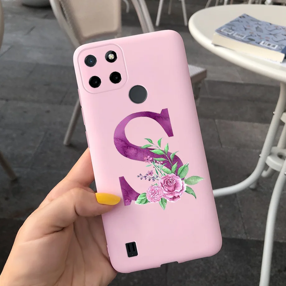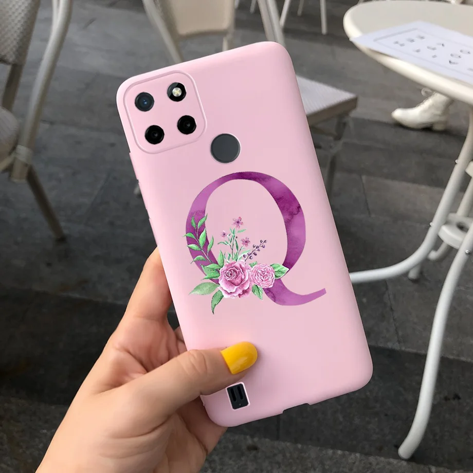 Чехол для Realme C21Y, чехол RMX3261 с милыми буквами, искусственна...