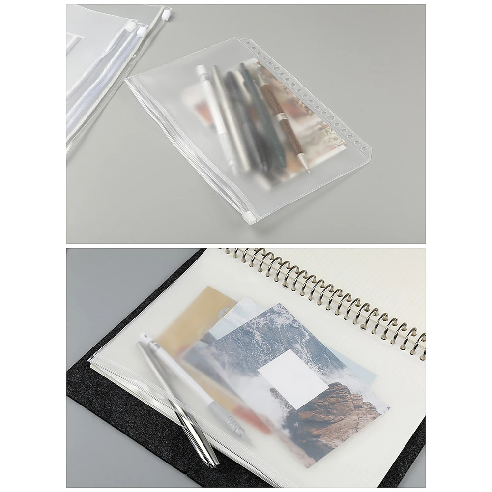 12 шт. связующего карманы A5 A6 A7 вяжущего материала на молнии папки для 6-кольцо Тетрадь связующего прозрачная свободная сумка с изображением листа документов сумки