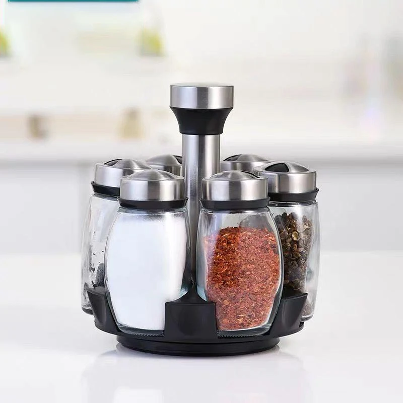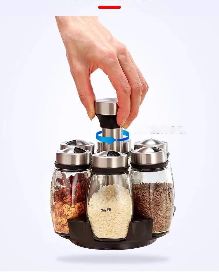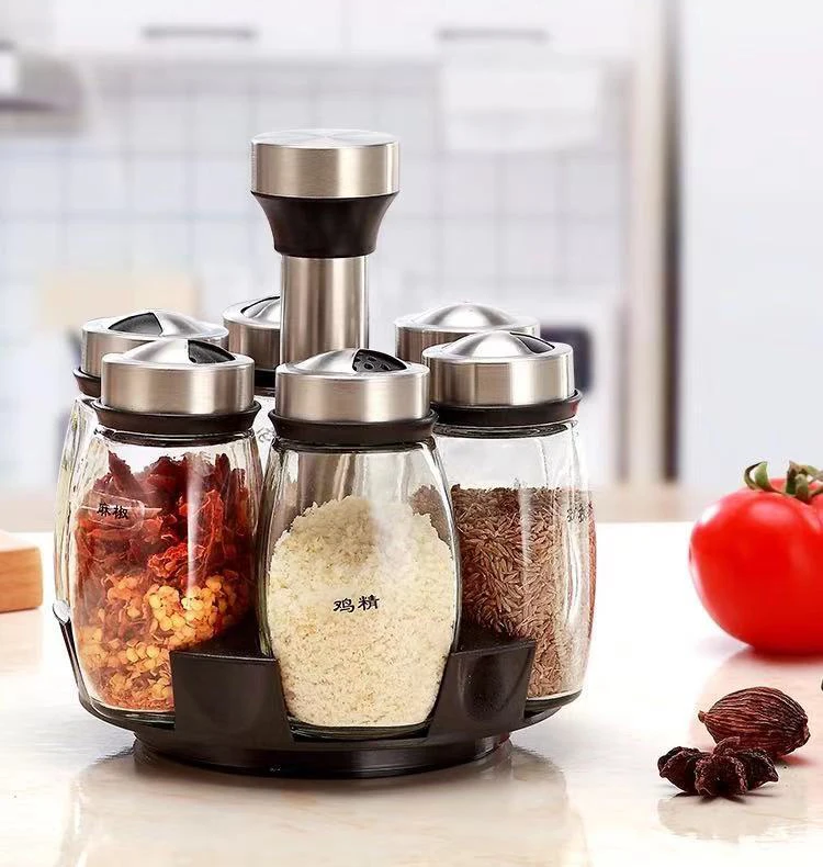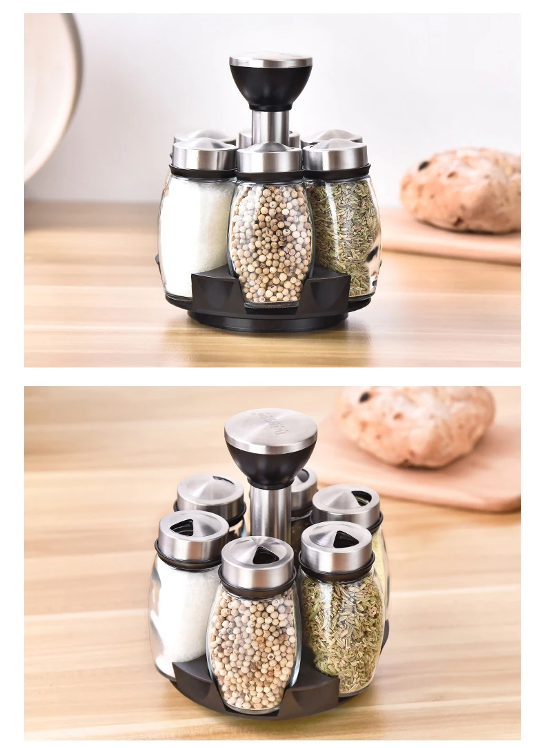 Вращающаяся банка для специй, контейнеры для приправ, набор бутылок для перца, кухонная полка для хранения приправ, контейнер, держатель для солонка