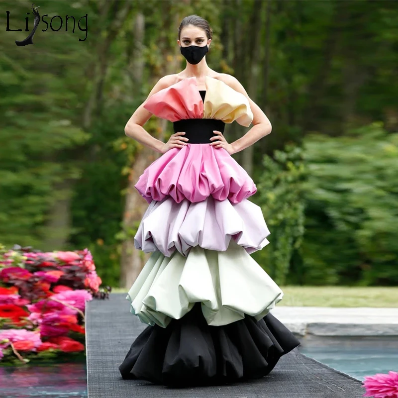 Модные Красочные платья для выпускного вечера без бретелек с оборками в несколько рядов шикарное вечернее платье уникальные Подиумные вечерние платья