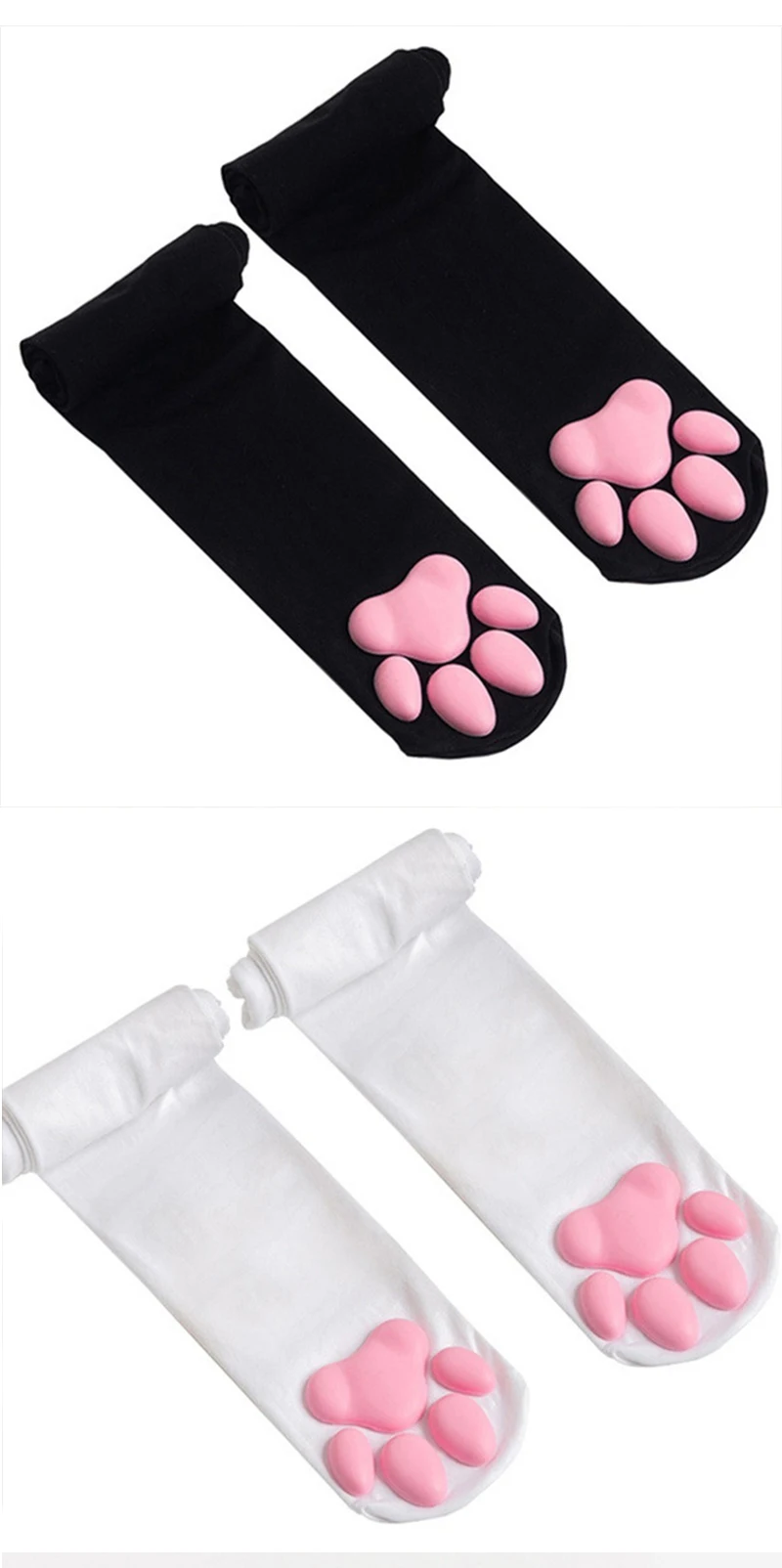 Носки с кошачьими лапками, милые облегающие шапочки с 3D кошачьими лапками для женщин, Чулки с лапками, носки для косплея Лолиты с Pawpad, носки до бедра с кошачьими лапками для косплея