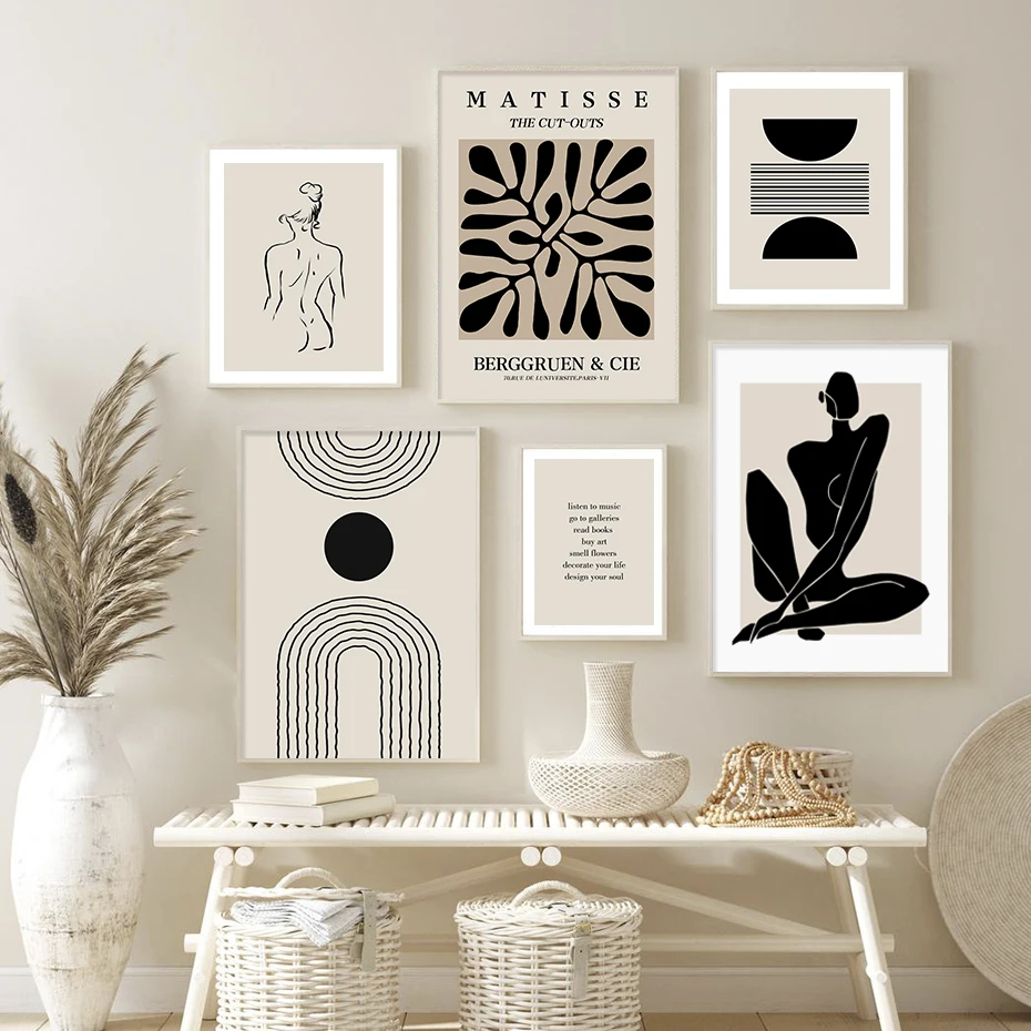 Абстрактные Художественные постеры Matisse в стиле бохо с листьями, черные и бежевые картины на холсте, настенная печать, картина для гостиной, интерьер, домашний декор