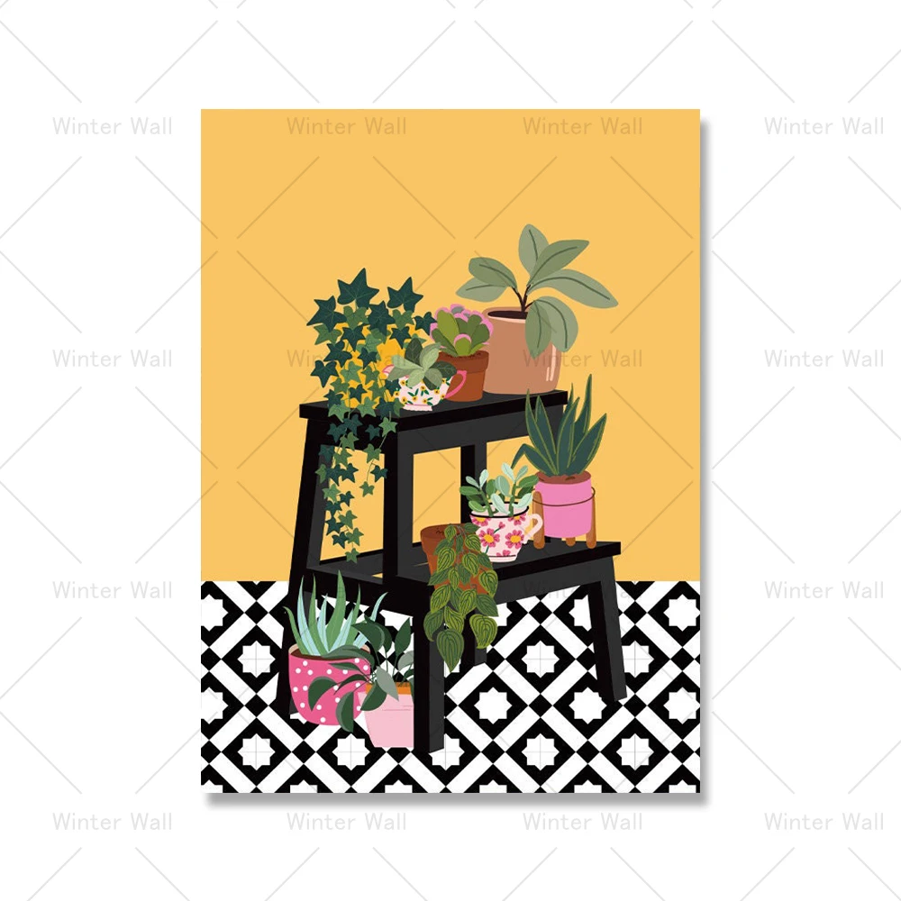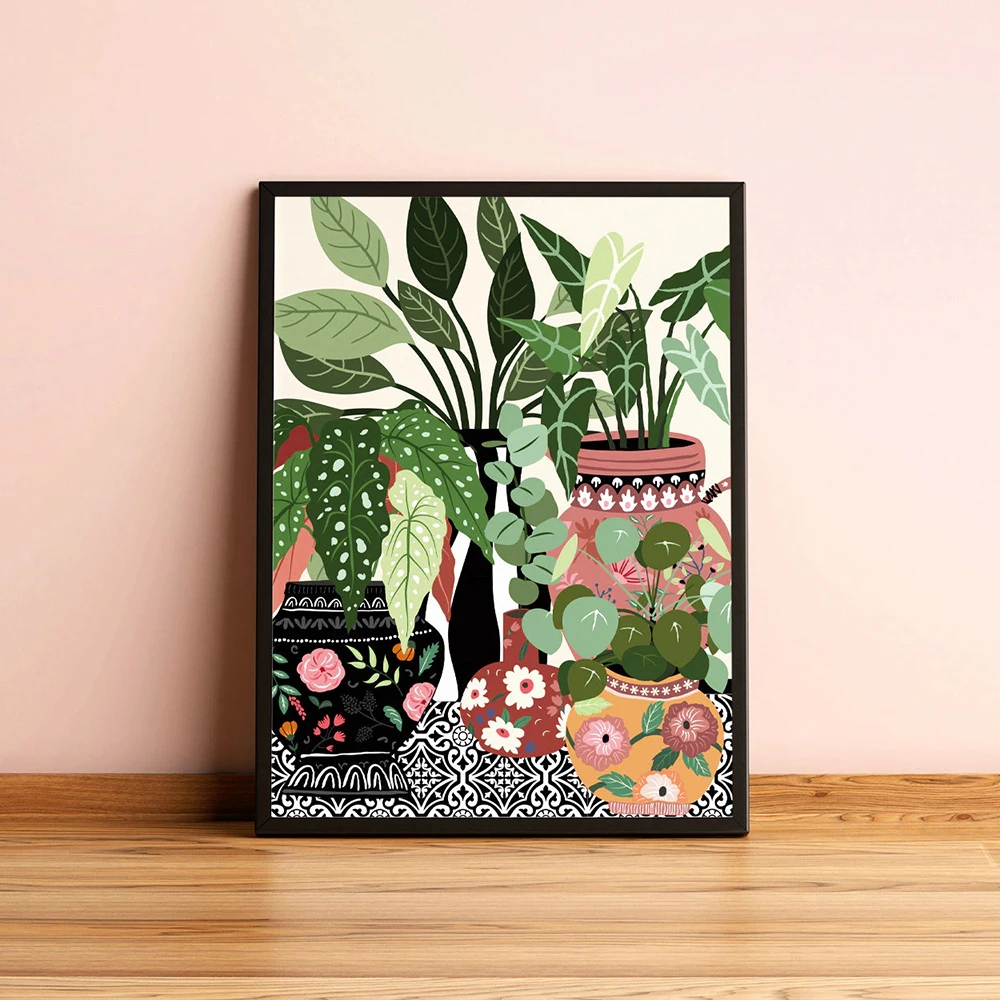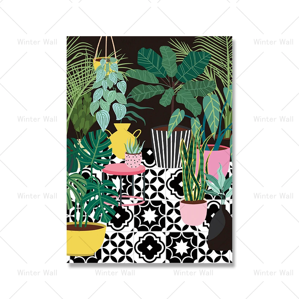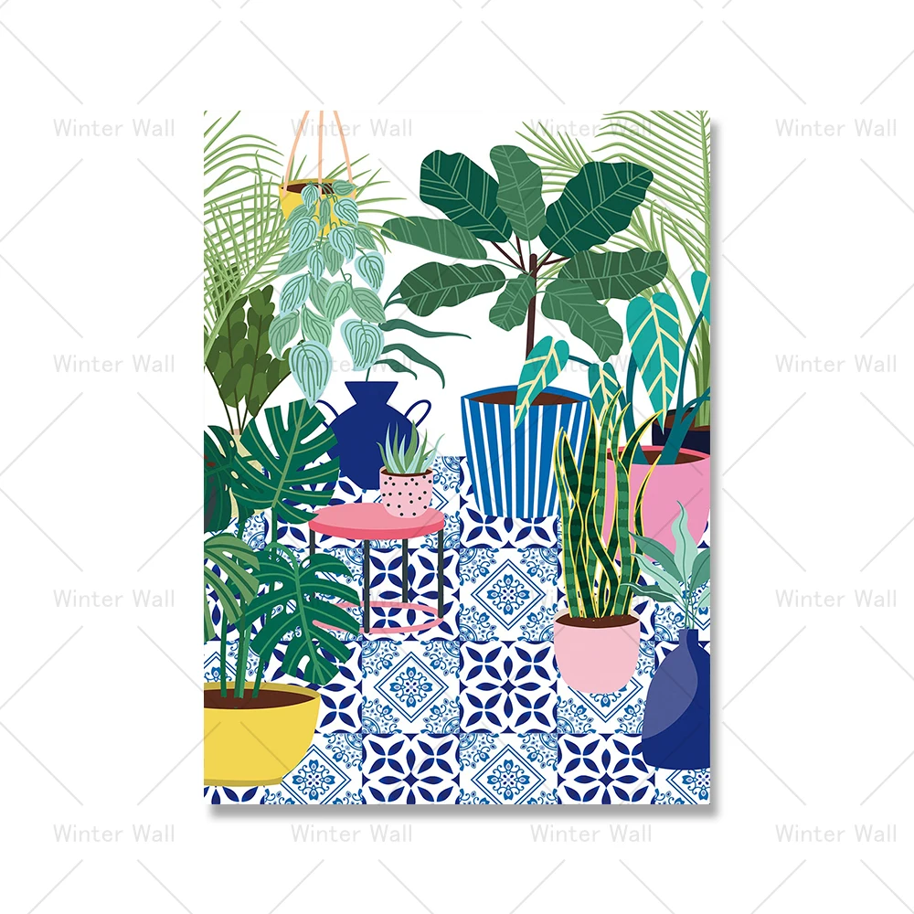 Греческая плитка, ботанические дома, растения, искусство, скандинавский плакат, домашний декор, бохо, зеленые листья, Декор, картина, современное настенное искусство, холст, живопись