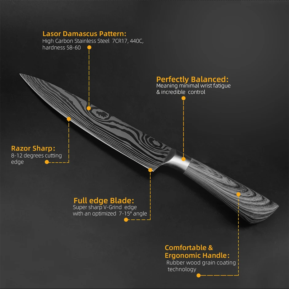 Набор японских кухонных ножей 7CR70 440C, шеф-повара сантоку, мясница, лазерный дамакулирующий узор для приготовления пищи, 578 дюймов