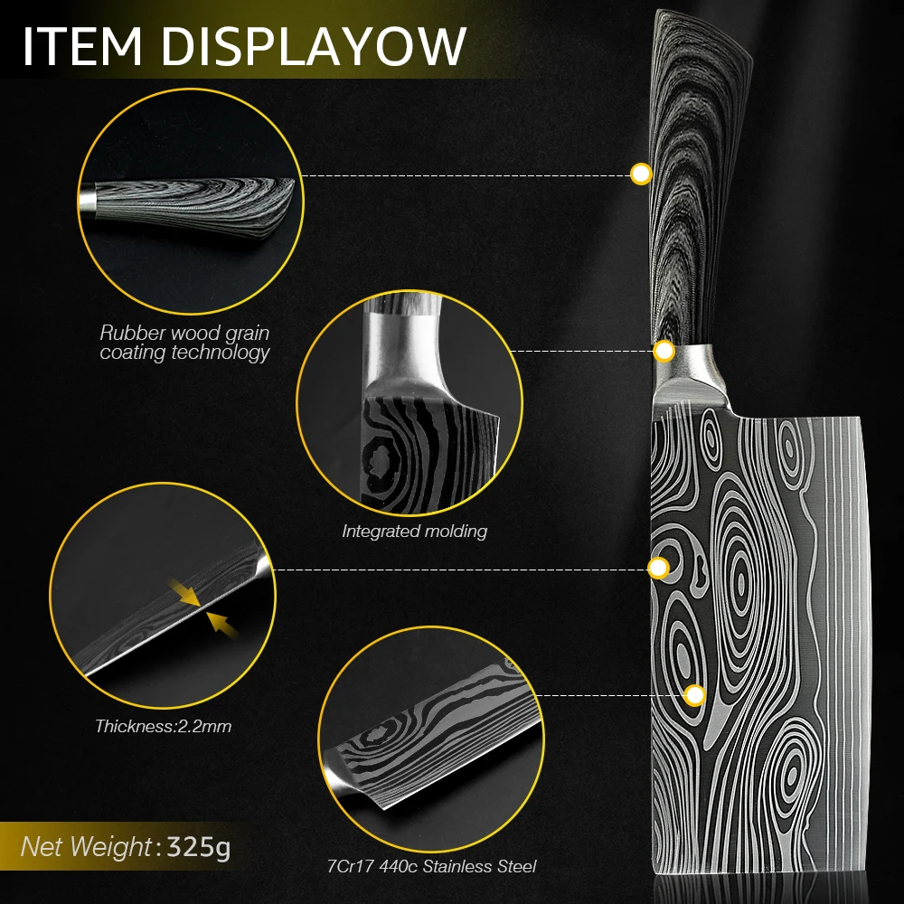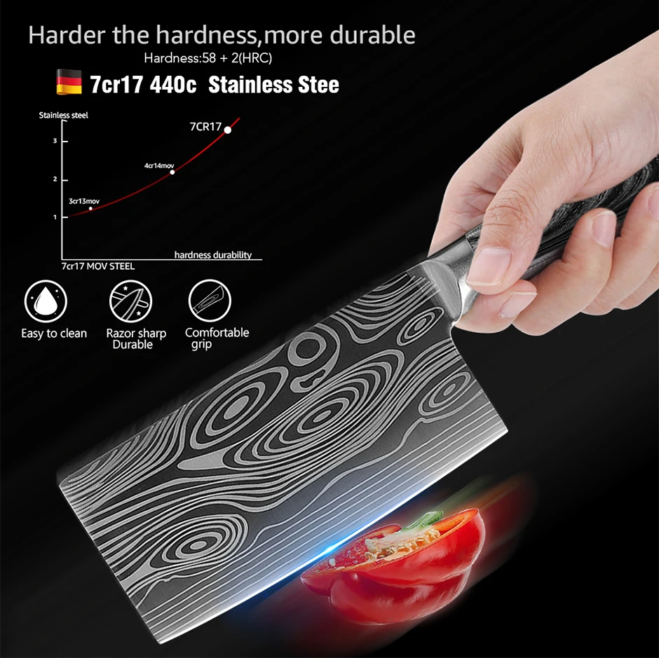 Кухонный нож шеф-повара 7Cr17 440C, универсальный Кливер из нержаве...