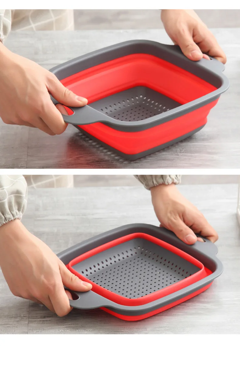 Квадратная дренажная корзина, складной дренажный дуршлаг, гибкий ск...