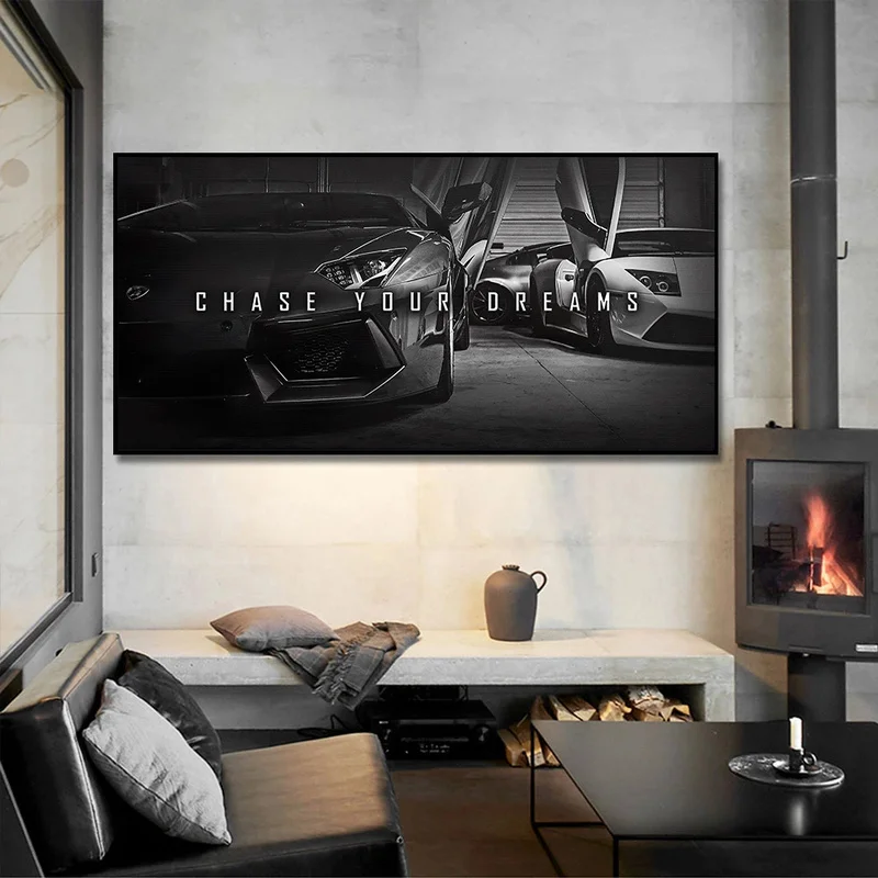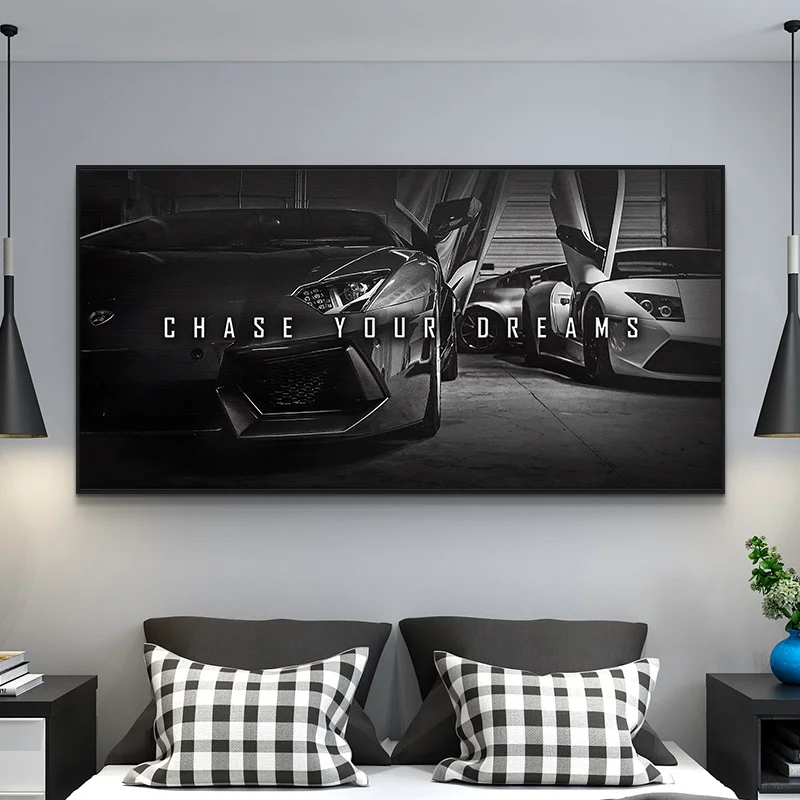 Мотивационная Картина на холсте Qoutes для автомобиля, постер для надписей, Чейза за своими мечтами, спортивный автомобиль, культура победителей, картина, домашний декор для стен