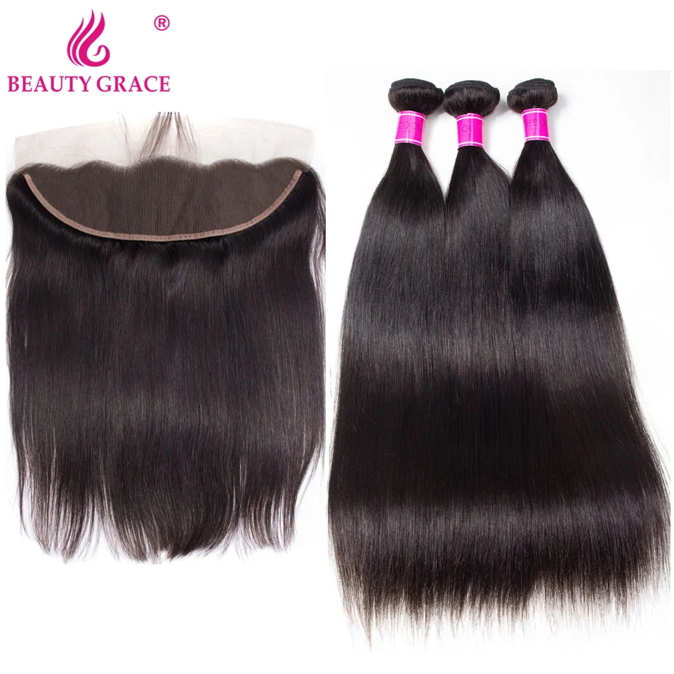 Перуанские прямые волосы, 3 пряди с фронтальной застежкой