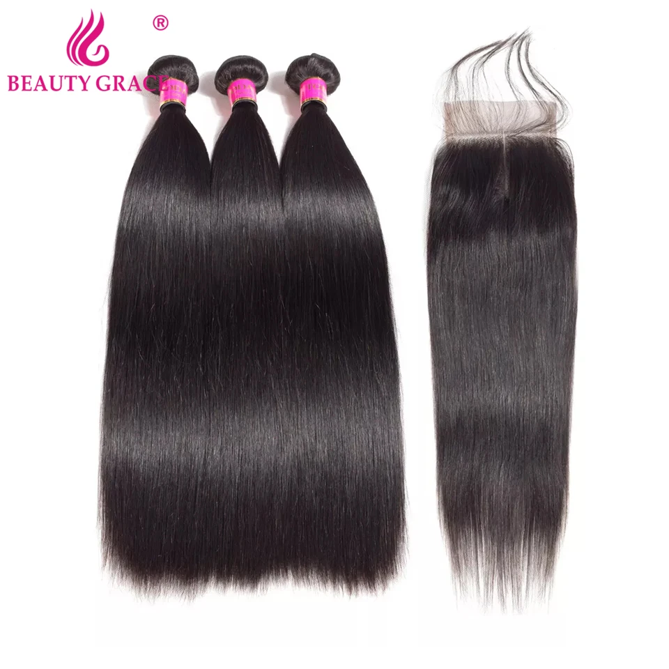 Hair MaterialPeruvian human hair straight hair bundles with closure