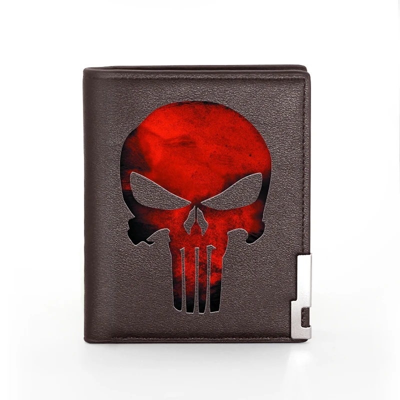 Высококачественный крутой кожаный кошелек в стиле милитари с принтом черепа для мужчин и женщин, тонкий кошелек для кредитных картудостоверений личности с вставками, Короткие Кошельки