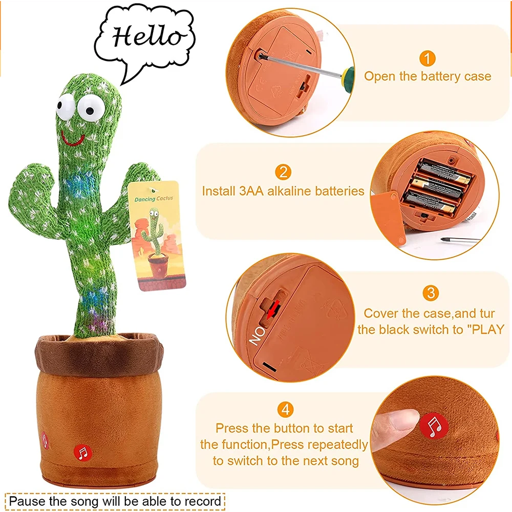 Кактус, плюшевая игрушка, электрическое пение, 120 песен, танцующий...