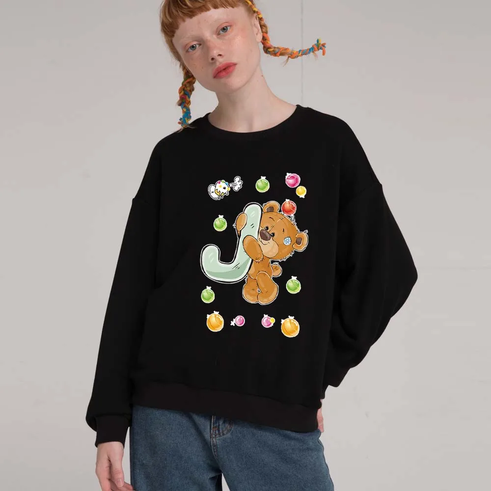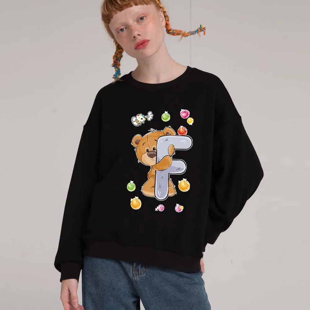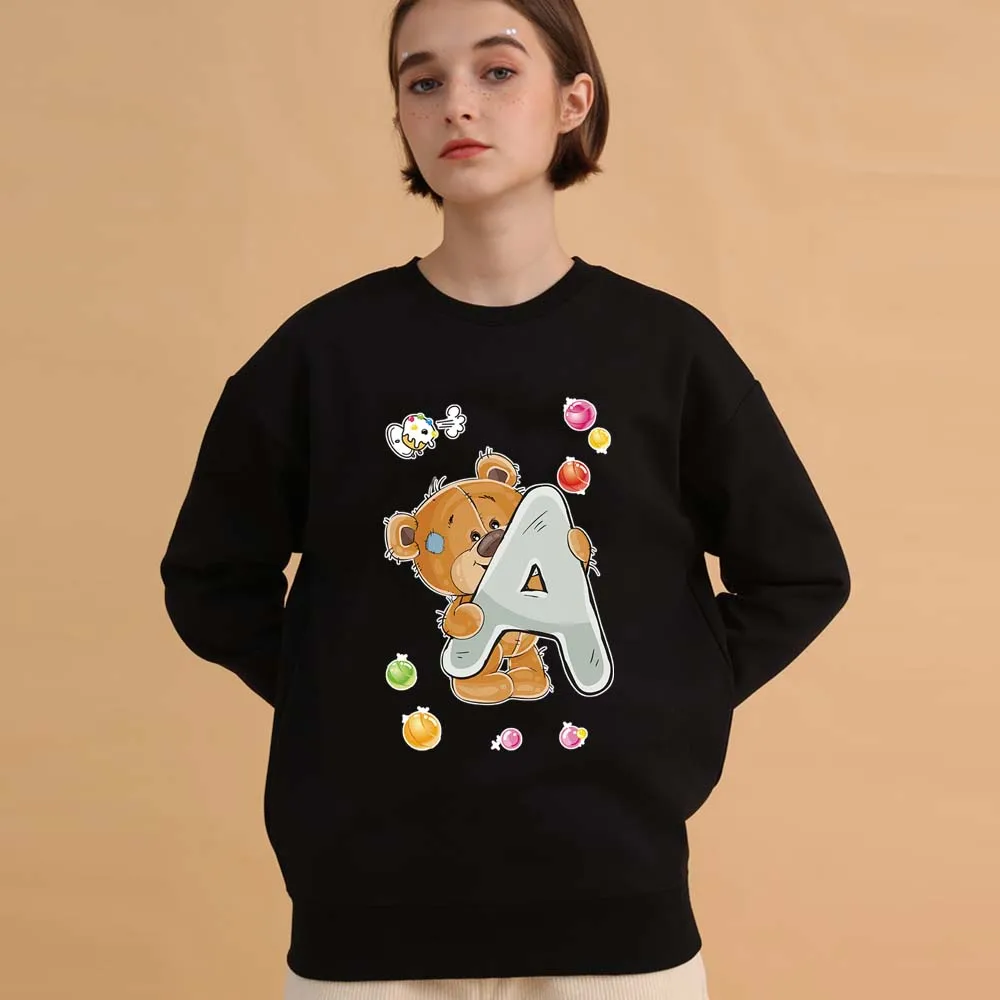 Толстовка Женская с длинным рукавом, мишка тедди с надписью от A до Z, Модный повседневный Свободный пуловер