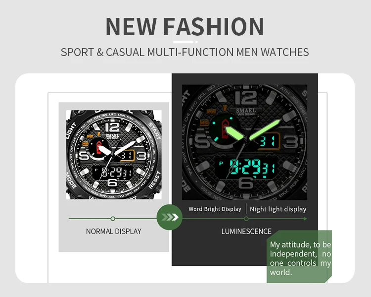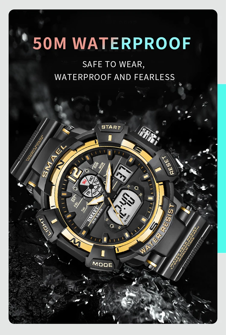 Часы SMAEL мужские, спортивные, аналоговые, цифровые, светодиодсвет...