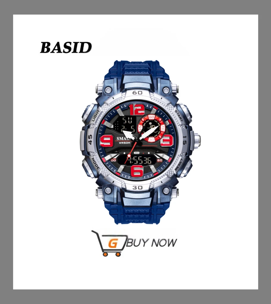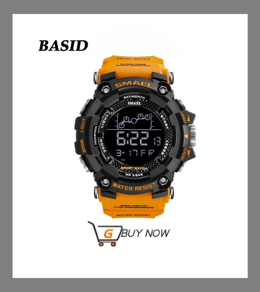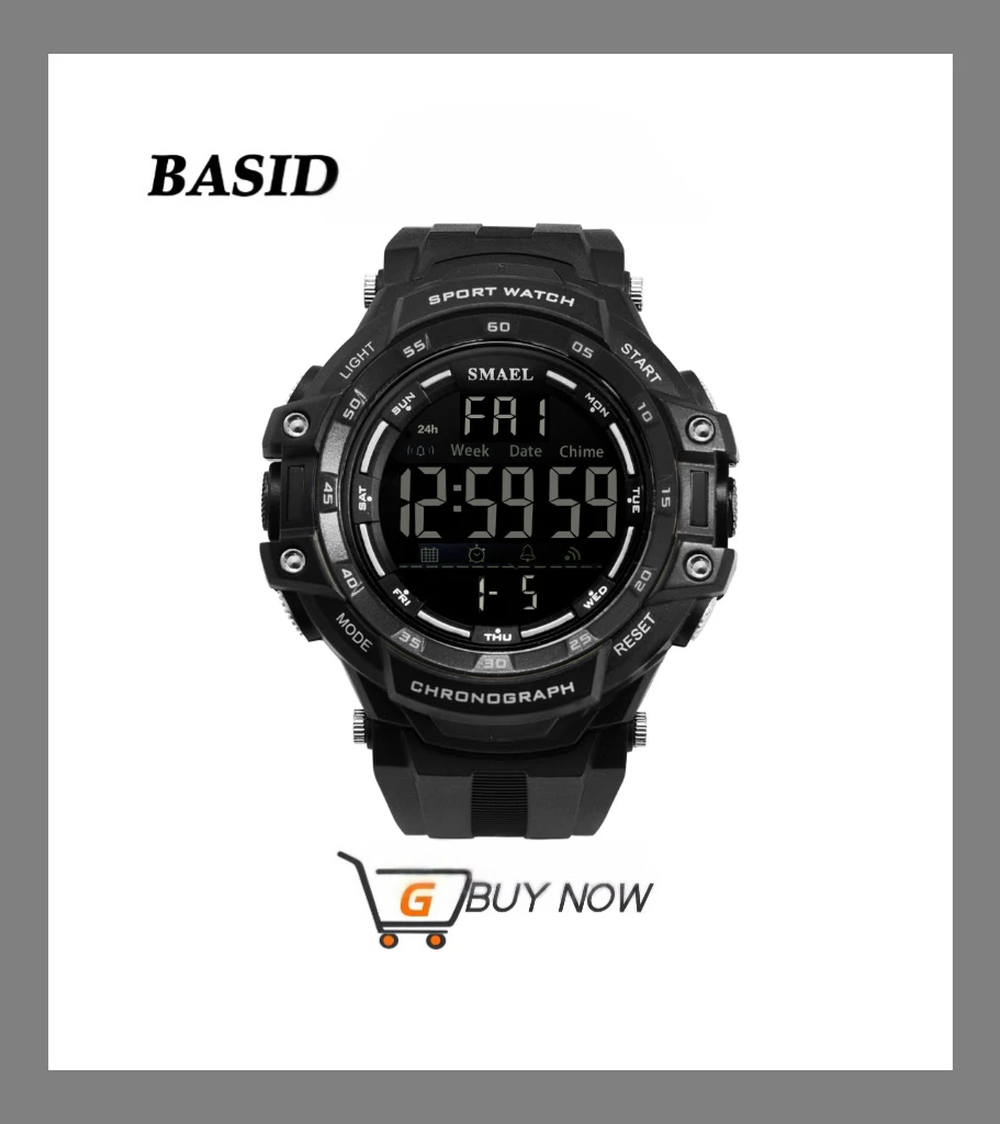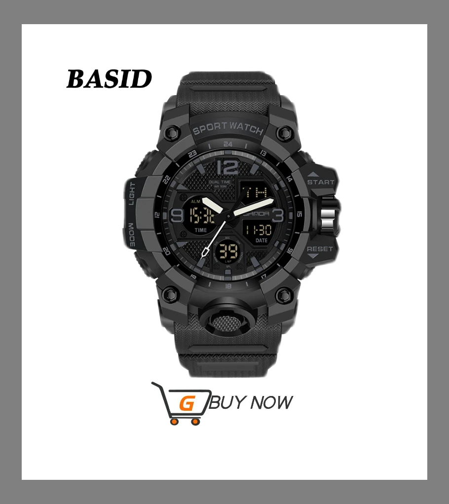 Часы наручные BASID Мужские Цифровые, брендовые Роскошные светодиодные электронные кварцевые, водонепроницаемые ударопрочные, в стиле милитари