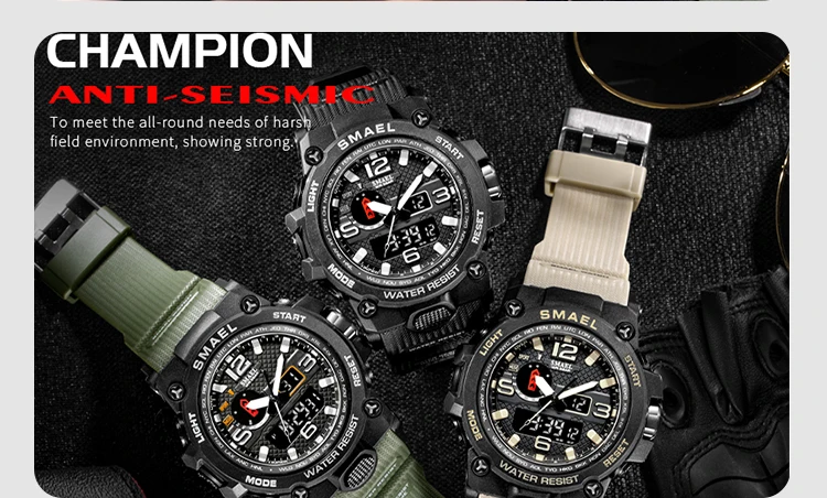 Часы SMAEL мужские, спортивные, армейские для плавания, с двойным д...
