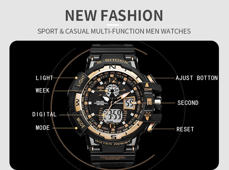 SMAEL модные мужские часы LED спортивные водонепроницаемые часы муж...