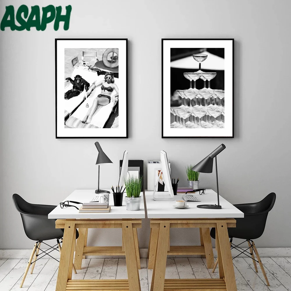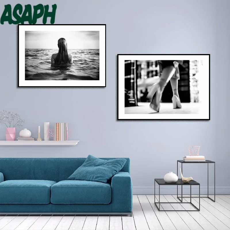 Привлекательная элегантность Женская Морская черная белая модная фотокартина для плавания на холсте настенные картины для гостиной домашний декор