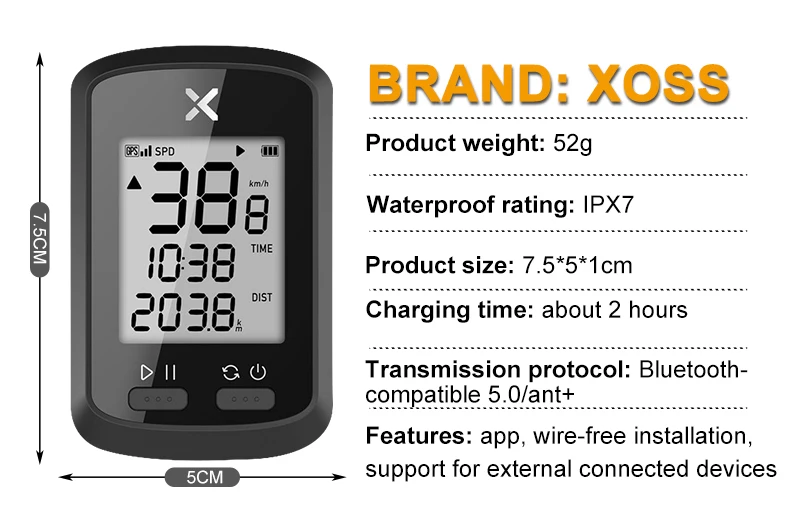 Велокомпьютер XOSS G Plus беспроводной, GPS Спидометр, водонепроницаемый, дорожный велосипед, горный велосипед, Bluetooth ANT + с измерением частоты педалей