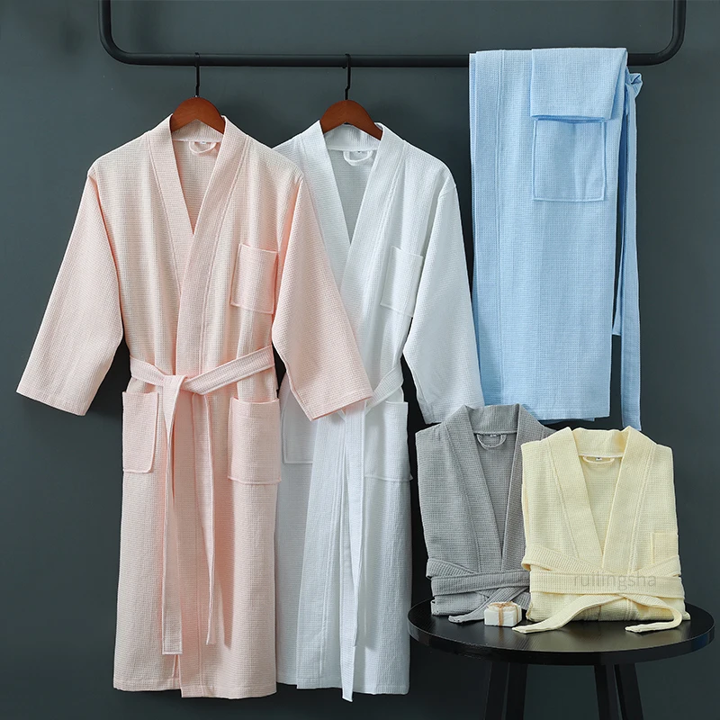 Халат-кимоно махровый унисекс, легкий банный халат с вафельным покрытием, одежда для сна, комплект для женщин и мужчин, 2022