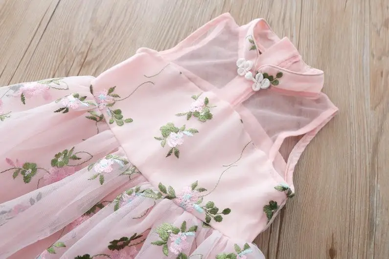 Платья для девочек, Китайская вышивка с цветами, Сетчатое платье ха...