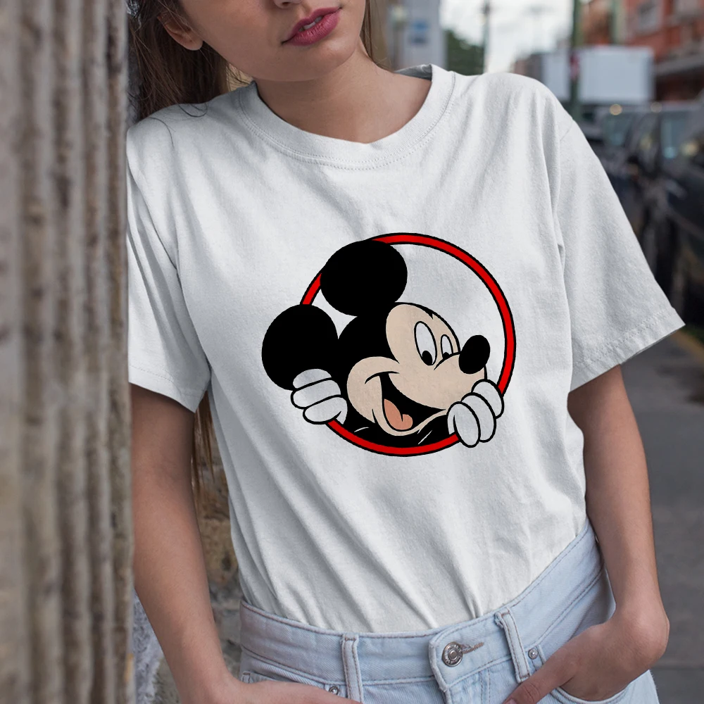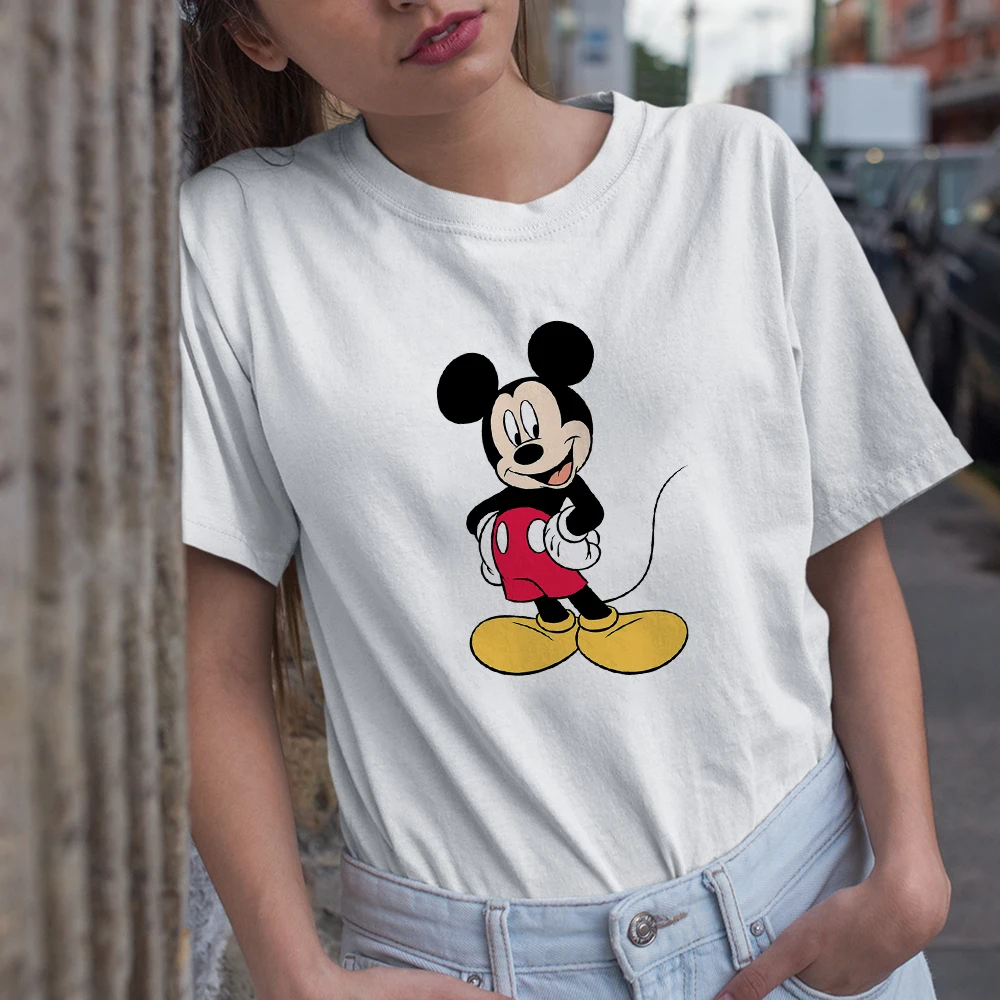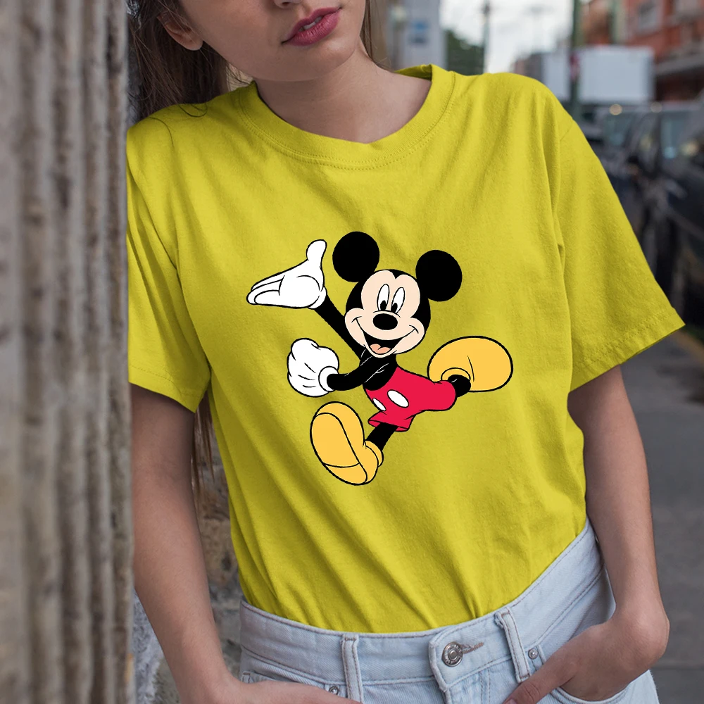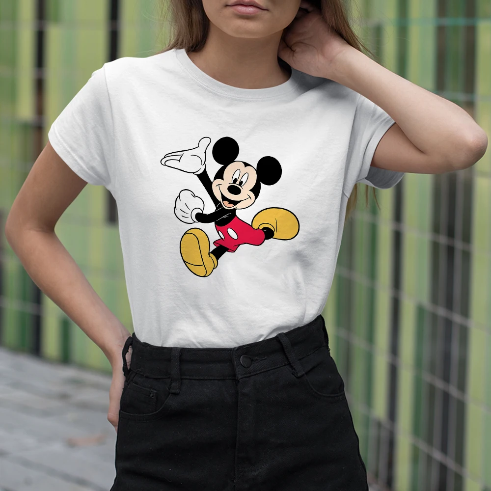 Топ Для женщин футболка с короткими рукавами Дисней Микки Маус узор футболка для взрослых летняя повседневная европейская футболка Y2k одежда Ropa Tumblr Mujer