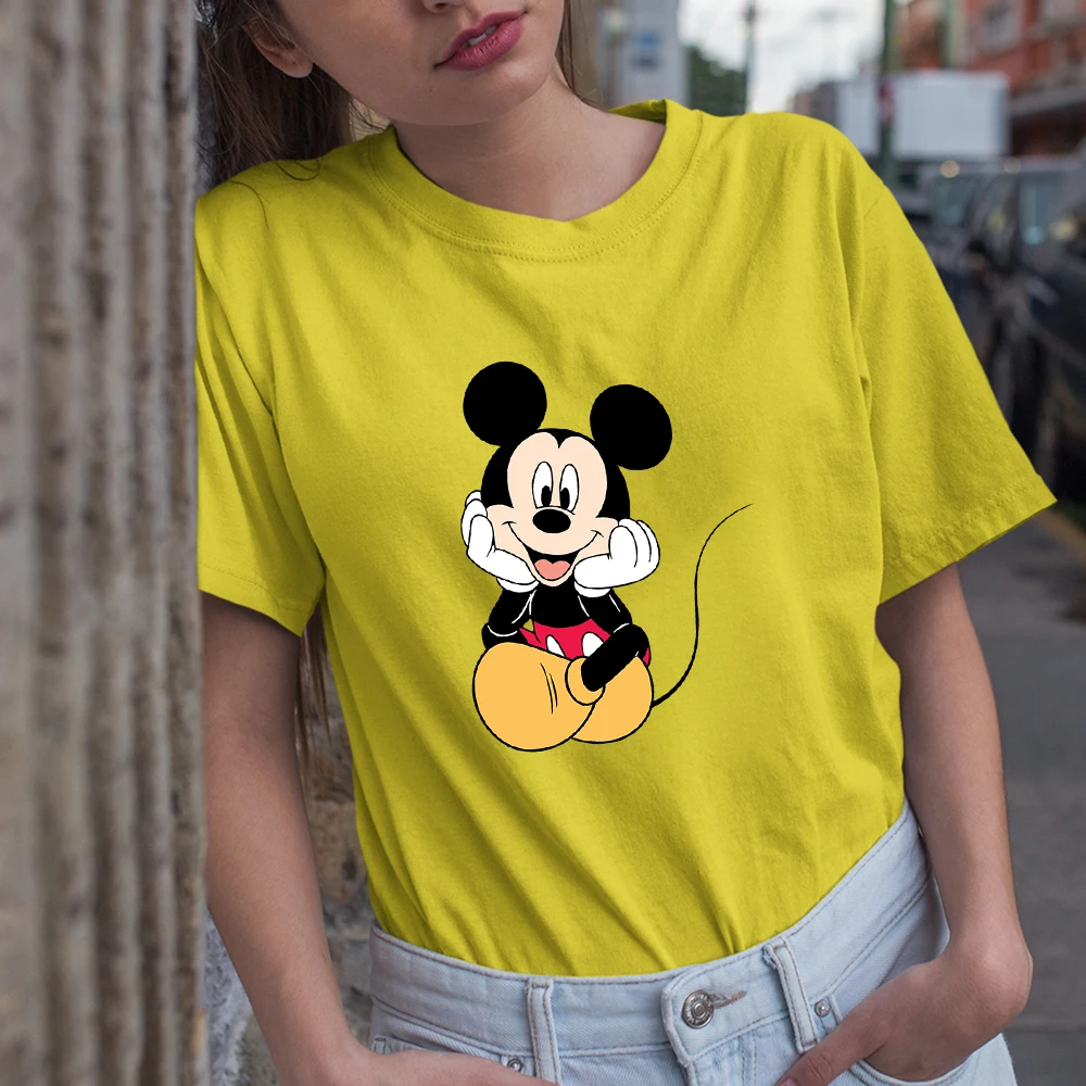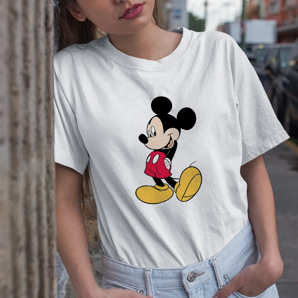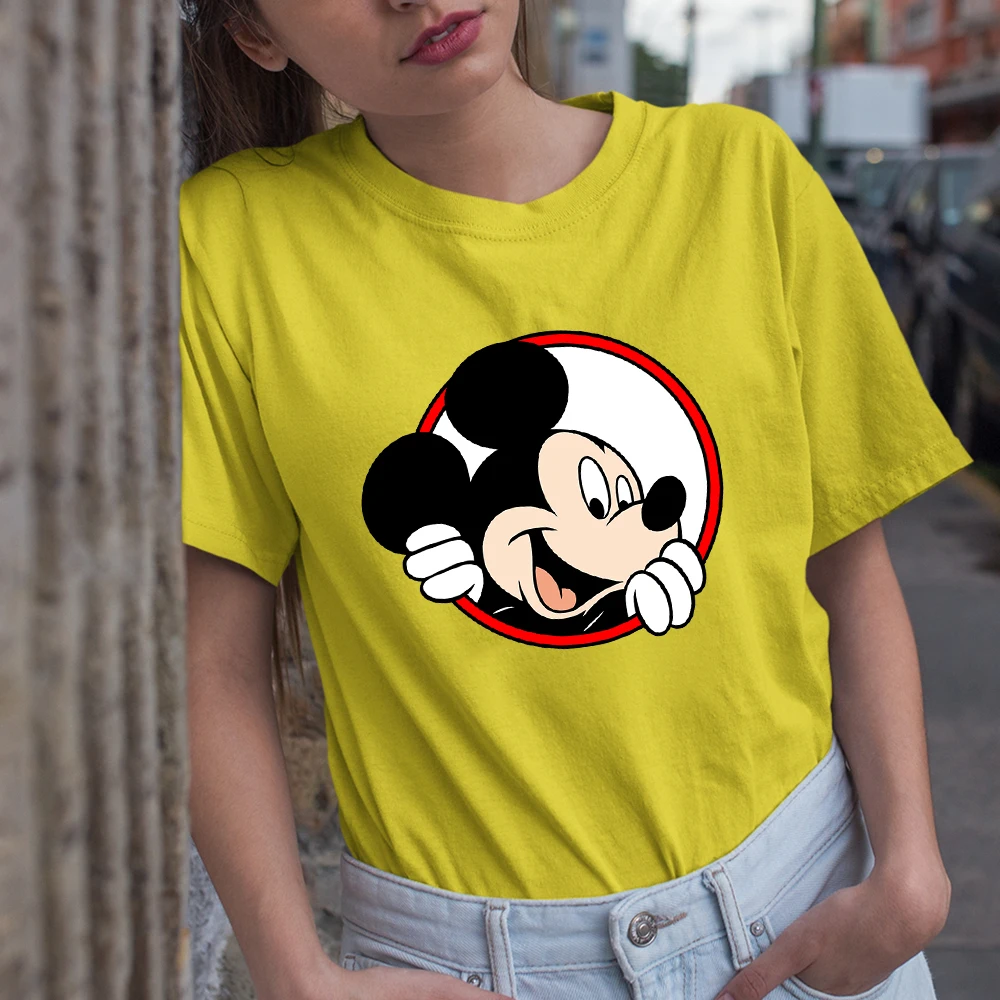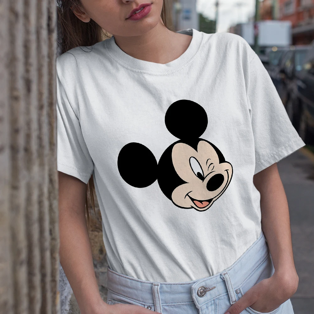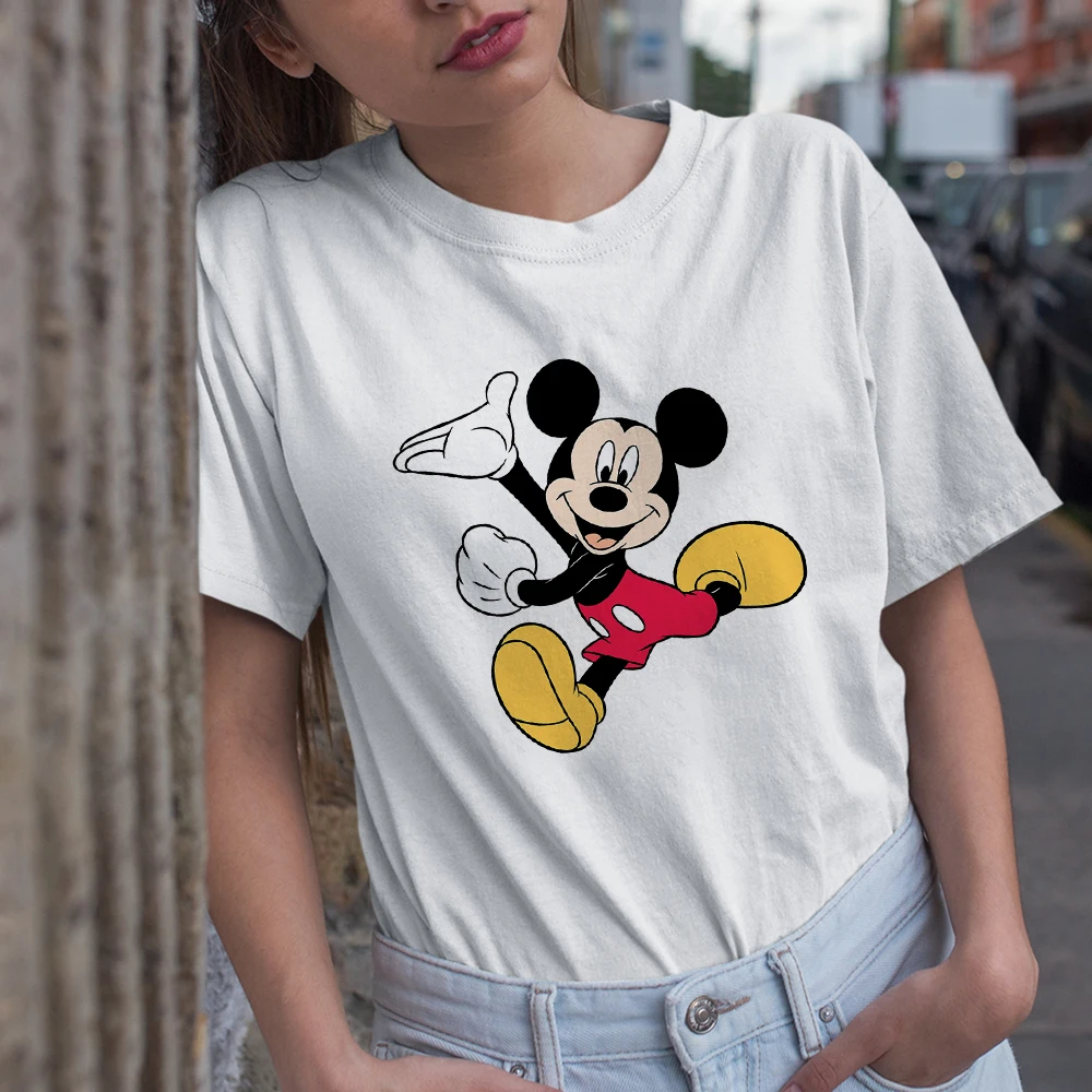 Топ Для женщин футболка с короткими рукавами Дисней Микки Маус узор футболка для взрослых летняя повседневная европейская футболка Y2k одежда Ropa Tumblr Mujer