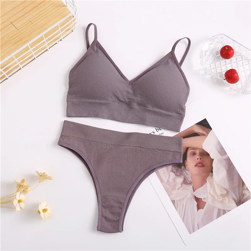 Комплект женского Бесшовного нижнего белья из трусиков с высокой талией и бюстгальтера без косточек