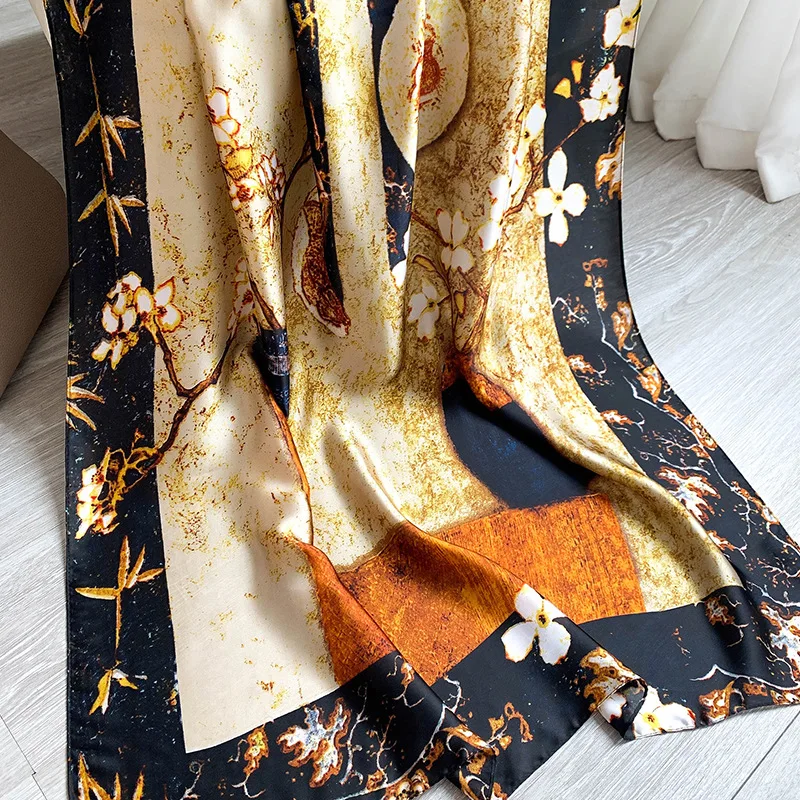 Новинка 2021, шелковые шали 180*90 см, роскошный фирменный дизайн, женский шарф, палантины, хиджаб, женский головной платок, сумка, шарфы, накидки