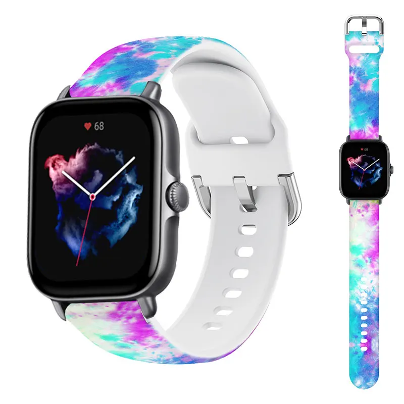 Силиконовые часы с принтом для Amazfit GTS232eGTS2 MiniGTR 3 Pro47 ммGTR22estratos 23, Amazfit ремешок bip, 20 мм 22 мм