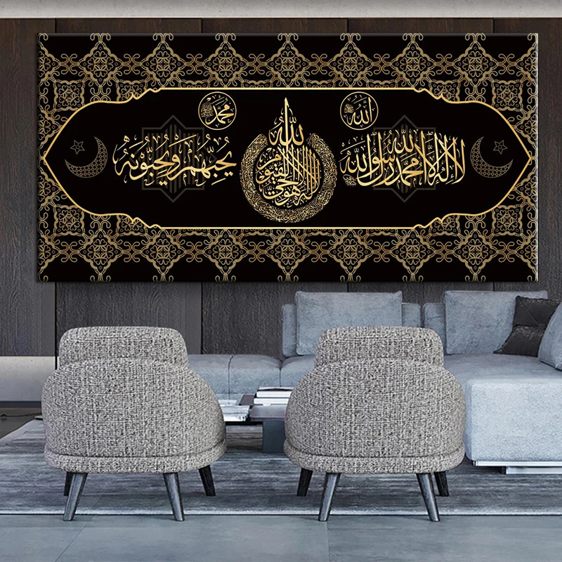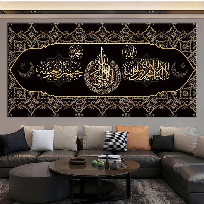 Современный Исламский Коран, холст, живопись, настенное искусство, мусульманская лампа, каллиграфия, плакат и Декор для дома, мечети
