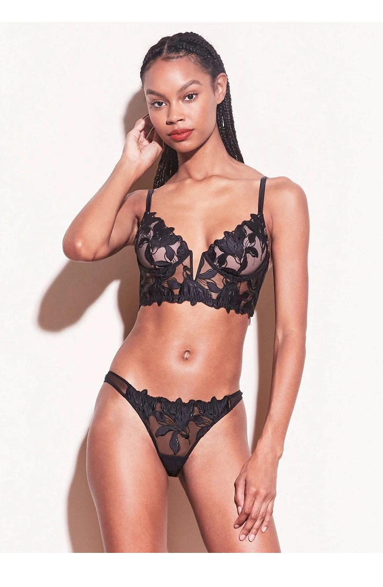Глубокий v-образный вырез, Цветочная вышивка, чувственный комплект ...