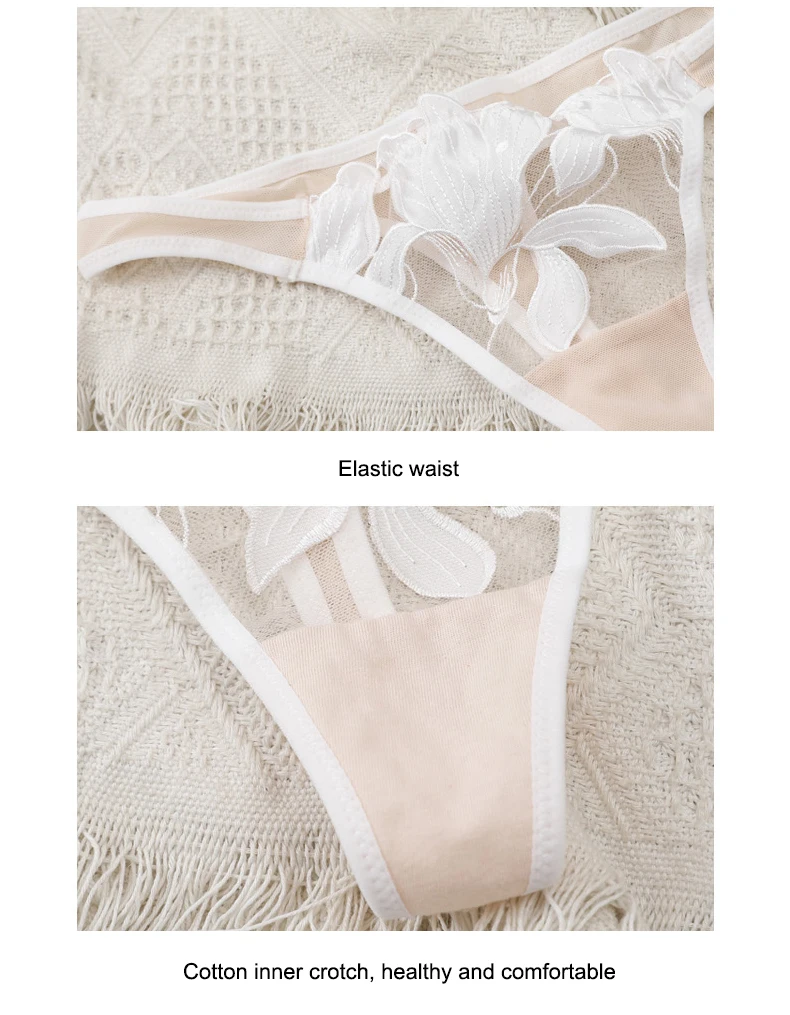 Женский комплект нижнего белья с цветочной вышивкой, тонкий прозрач...