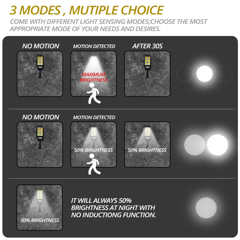 1. Светодиодный светильник высокой яркости, энергосберегающий, ровный светильник, длительный срок службы.2. Солнечные панели преобразуют солнечную энергию в электричество, более экологически чистые.3. Интеллектуальное управление переключателем времени. Освещение автоматически запускается в темноте, и яркость подсветки автоматически выводится во время деления.4. Простая установка, без обслуживания надежная работа без необходимости подключения или траншеи.