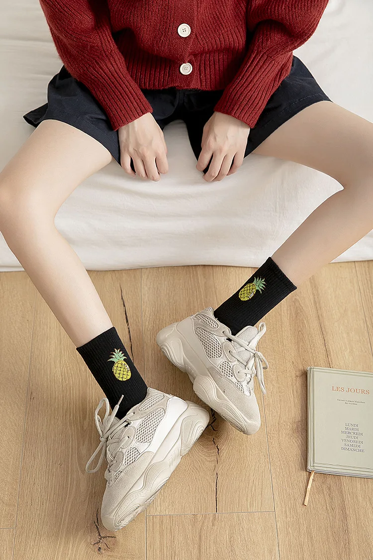 3 парыЛот, новые элегантные женские носки с фруктами, веселые забавные женские носки, повседневные хлопковые короткие носки в стиле Харадзюку с цветочным принтом