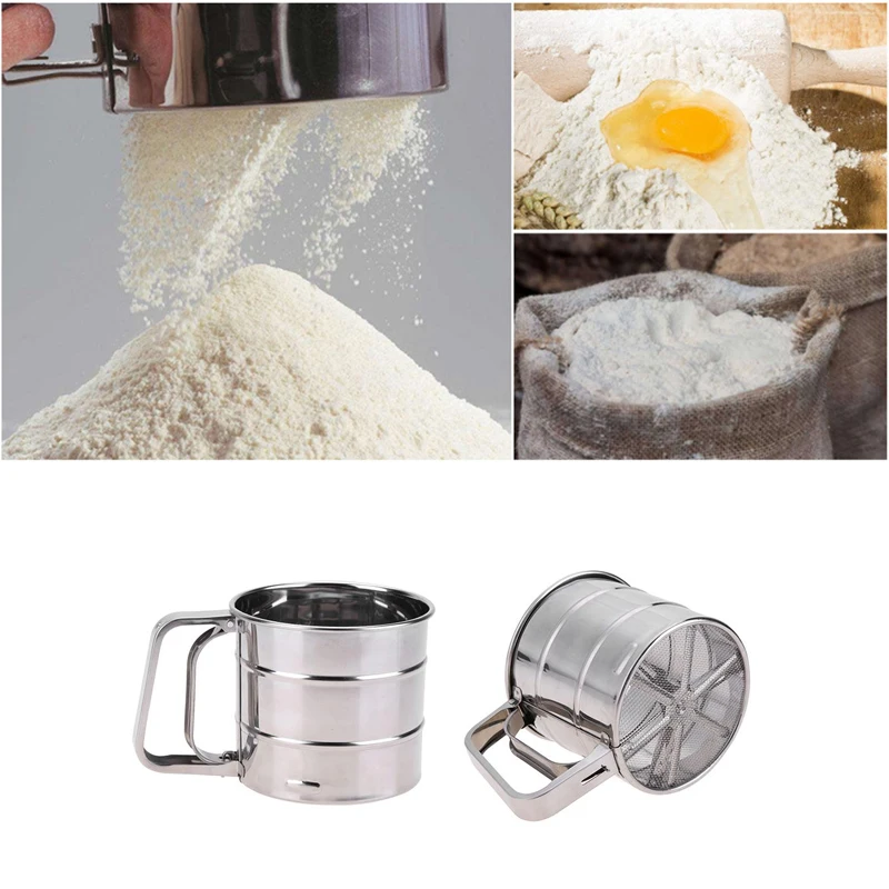 Ручной шейкер для муки из нержавеющей стали, сетчатый сито, чашка для глазировки, сахара, инструмент для выпечки, полуавтоматический фотоавтоматический инструмент для выпечки какао-порошка