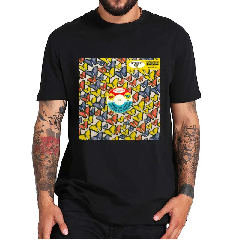 Футболка с изображением бабочки 3001-T King Gizzard-ящерицы, волшебника, рок-группы, фанаты нового альбома, Мужская одежда, мягкая футболка из 100% хлопка, европейский размер