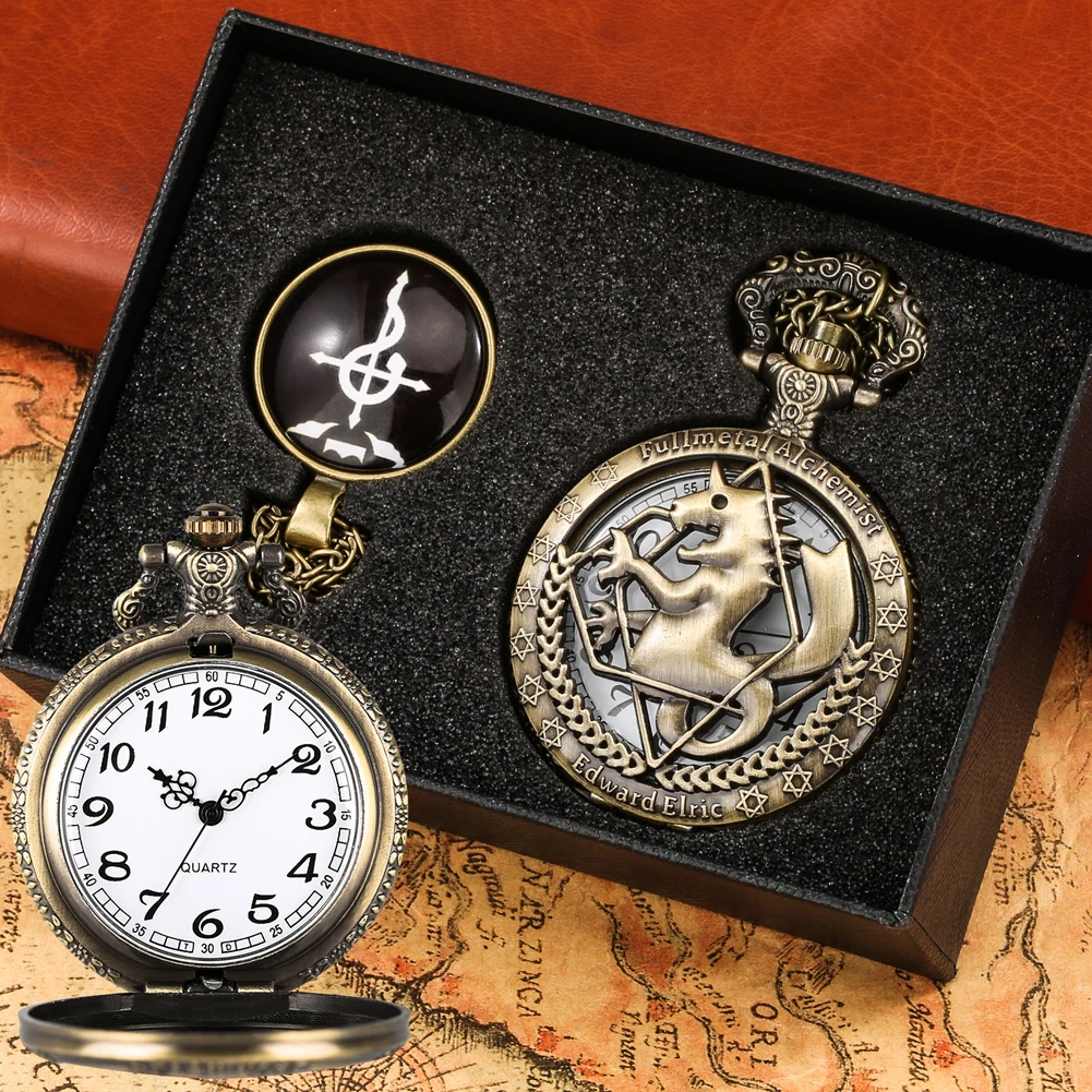 Карманные часы в стиле аниме в стиле ретро, полностью металлический алхимик, высококачественные подарочные наборы, кварцевые карманные часы, косплей, аниме, педант, ожерелье, часы