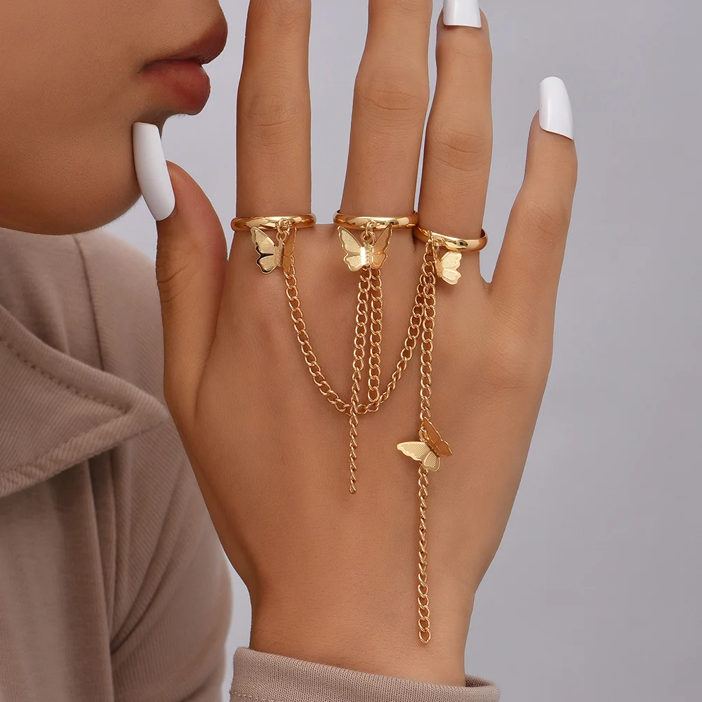 Креативный браслет-цепочка из звеньев бабочек, соединяемое кольцо на палец, браслет, браслеты для женщин, связанная с рукой, жгут, пара ювелирных изделий, подарки