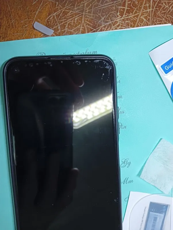 шло долго. пленка наклеилась без особых проблем. шов и пузырики ушли за ночь. 1 малюсенький остался сверху конечно, но не критично. хорошая дешманская пленка короче. без особых изысков. палец скользит, но до этого пленку брал подороже, она существенно получше была