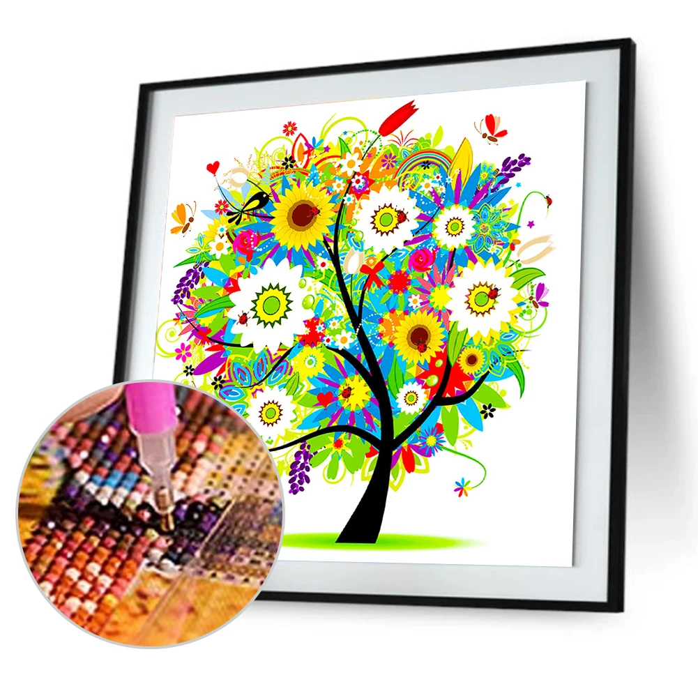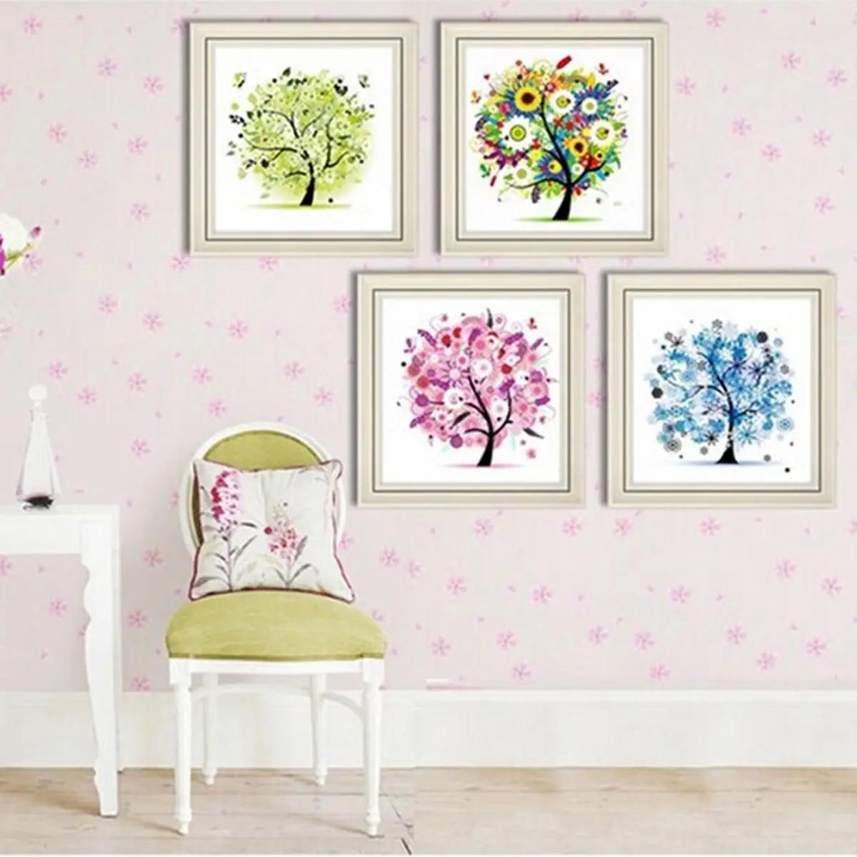 1 x картина с вышивкой в виде дерева на четыре сезона (стразы необходимо наклеить)