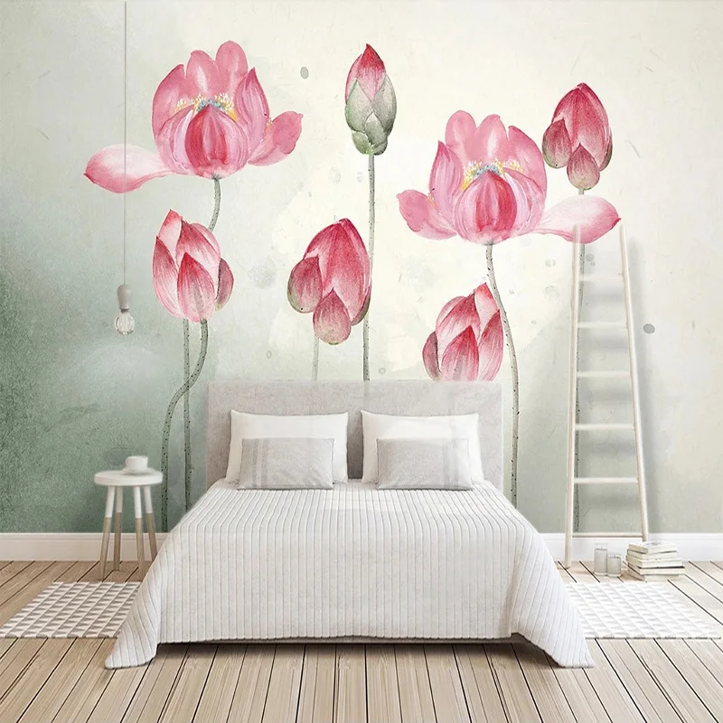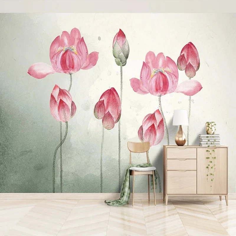 3D настенная бумага на заказ, китайская роспись, лотос, настенная бумага, чернильная стильная настенная живопись для гостиной, спальни, домашний декор, настенное покрытие