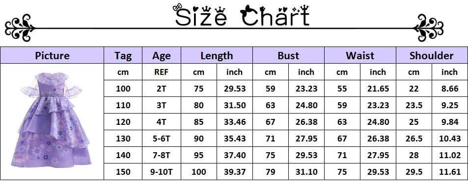Платье принцессы для костюмированной вечеринки для девочекЦвет: синий, фиолетовыйМатериал: полиэстер, молочное Микро волокно, другоеРазмер CN: 100-110-120-130-140-150Возраст: От 2 до 10 летПарик: свободный размер. Лучше для детей 4 лет или большеПринцесса: Mirabel Madrigal, Dolores, Isabela, PepaТема: принцесса, косплей, Хэллоуин, Рождество