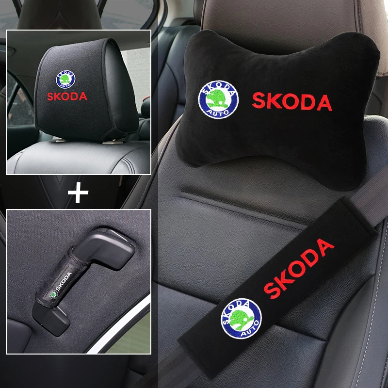 Высококачественный набор для автомобильного сиденья, накидки на подголовники под шею с вышитым логотипом, накладка на ремень безопасности, чехол с ручкой для skoda octavia fabia rapid